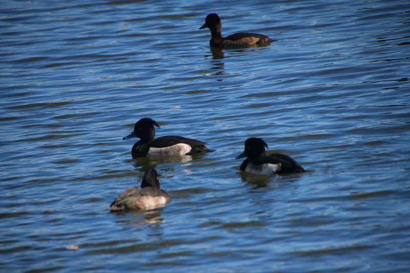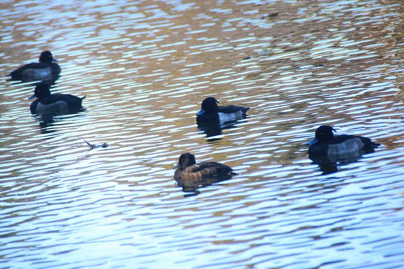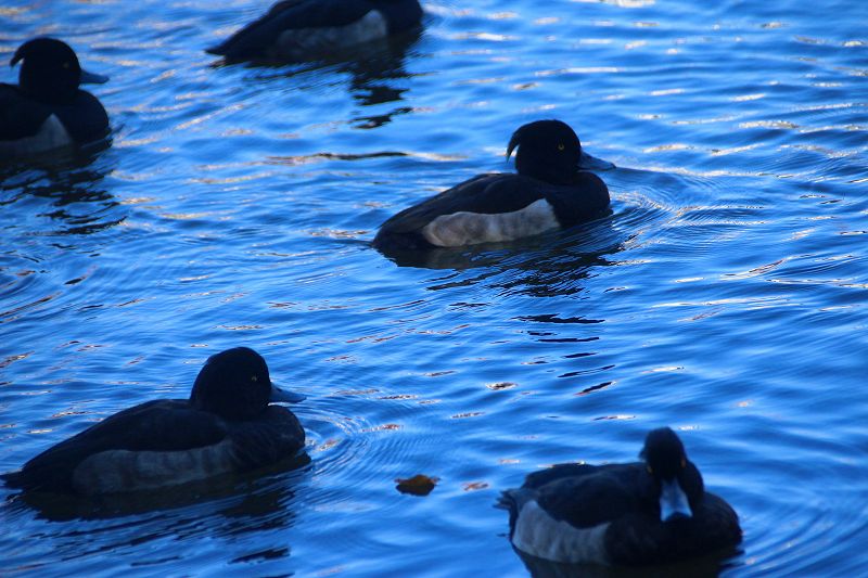 池にはキンクロハジロさん30羽ぐらいがのんびり泳いでいます。でもこちら側は日影でほとんど黒にしか見えません。