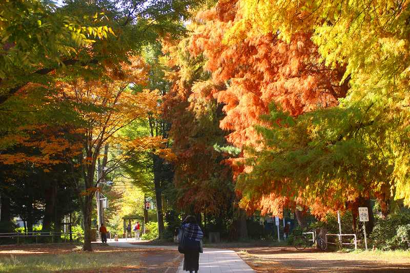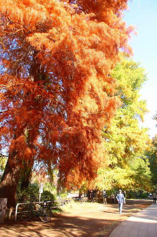 休みながら歩いていくとメタセコイアも大分茶色です。
